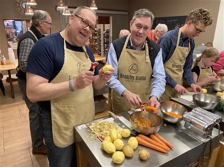 Madison Rotary made 64 quarts of soup at Healthy Italia in Madison that was donated to Homeless Solutions in collaboration with Soup Sisters