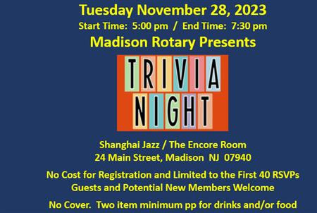 Madison Rotary Trivia Night social held at Shaghai Restaurant in Madison on November 28th. A good time was had by all